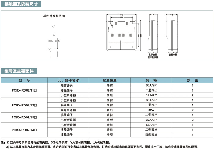 PCBX-RD02单相二表位电表箱
